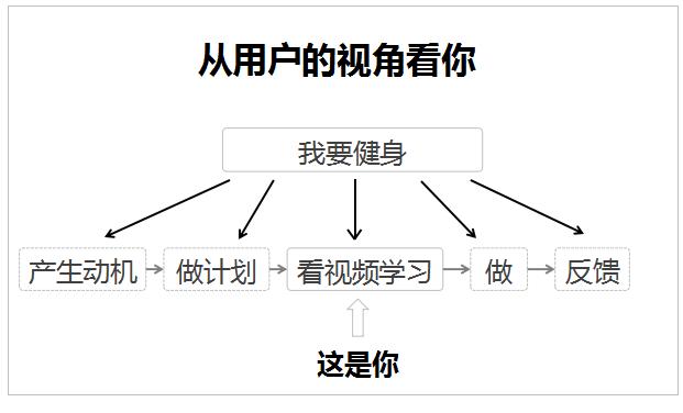 假设你是做专门做健身教学视频的,一定会发现可能没有那么容易爆火,真正对用户的改变也有限。你可能很难理解为什么,因为从你的视角看用户,是这样的: