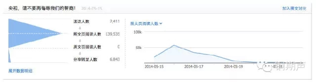 我来随手贴两个我的文章的打开率和转发率,您就知道我为什么要持续黑央视了。哈哈。