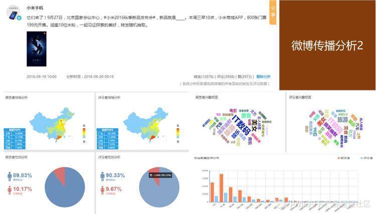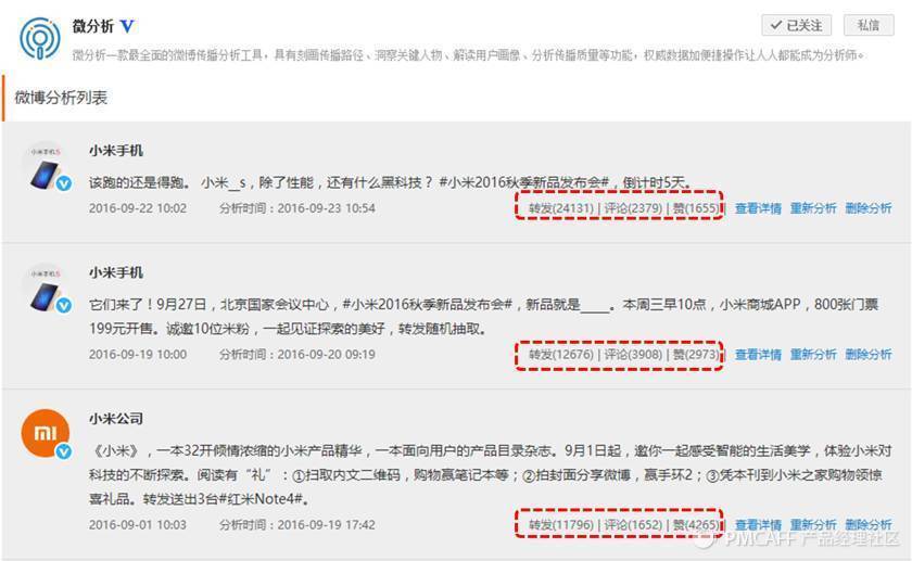 对小米两个微博账号的3条微博进行分析微博传播分析