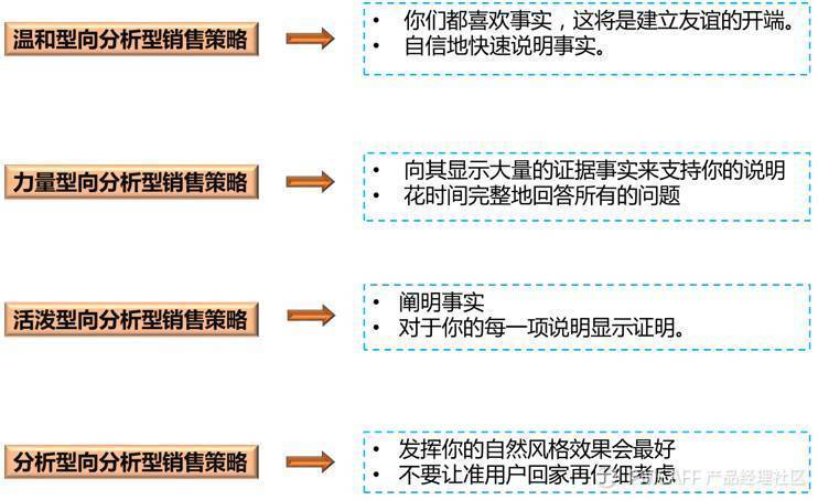 由此,各类不同性格类型的销售人员针对分析型用户的不同策略有: