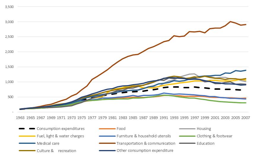 Fig 3: 日本消费(一级行业增长率,1963=100)