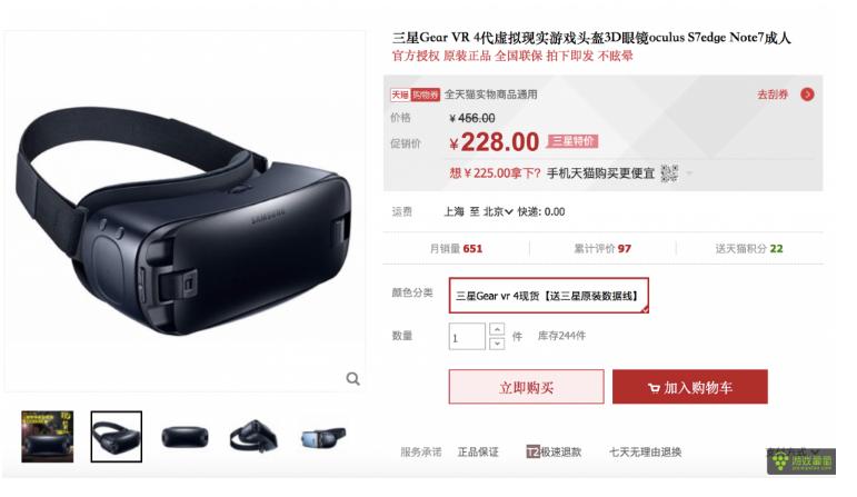 图2:9月21日229元售卖Gear VR的天猫店,目前产品已经下架,图片来自游戏葡萄
