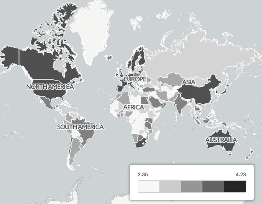 严谨认真的德国这回夺冠了,显著超过了第二名英国。萌叔觉得得分超过3.5的可以算第一阵营:美英澳加、西班牙、南非、法德意、中国、日韩、中国台湾。