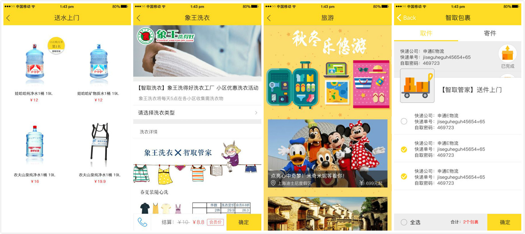 基于此,“智取管家”做了个结合物业公司的社区O2O业务,“智取管家”主要提供SaaS软件服务,把业主、物业公司和送快递到社区的快递员连接到SaaS平台上;有第三方在该平台上售卖产品和服务,如桶装水商、低温奶商家、洗衣厂商和小区周边旅行、票务产品,业主可以直接下单,而物业人员会将货物送上业主家门。