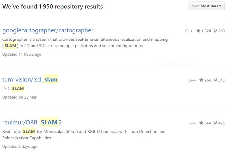 发布短短几天,Cartographer就已经是GitHub上所有有关SLAM的repo中获得Star最多的了(见下图),一举超过了许多诞生多年的知名repo。就问你怕不怕!