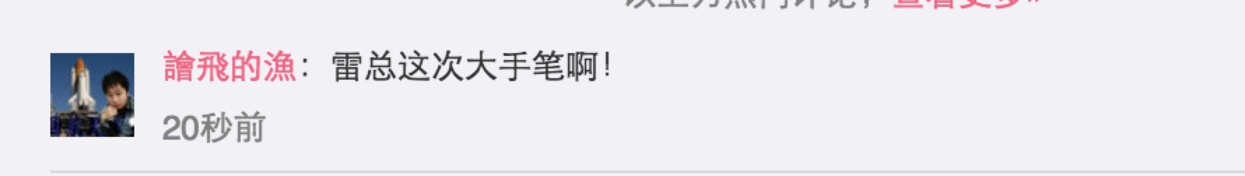 很多网友在小米的微博下面评论,“小米这次是真的下血本了”,毕竟,梁朝伟的代言费用不菲。根据公开媒体报道,梁朝伟在代言雪佛兰品牌时的费用在3000万元港元左右,出席一次3小时的商业活动的佣金约1000万港元。换句话说,小米此次邀请梁朝伟做代言人,以及让梁朝伟在新品发布会站台的综合费用也将在数千万元的级别。