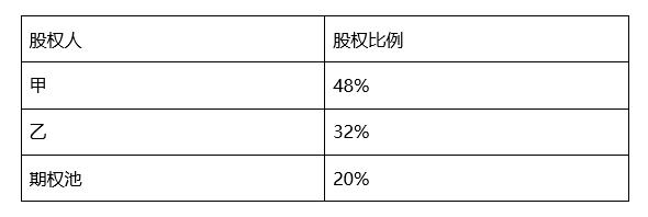 一年之后,天使投资人来了,双方经过评估,认为企业价值80万,天使愿意投资20万,且要求在自己入股前,公司先拿出20%的股份建立期权池。