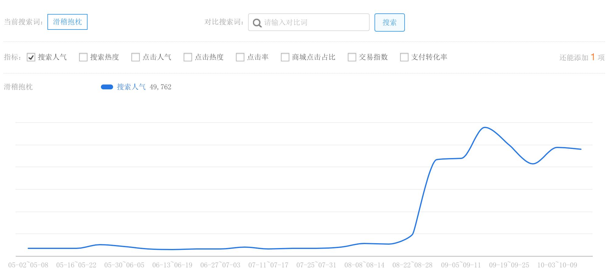 “滑稽抱枕”是从9月初才出现爆发性增长的 / 数据来源 淘宝