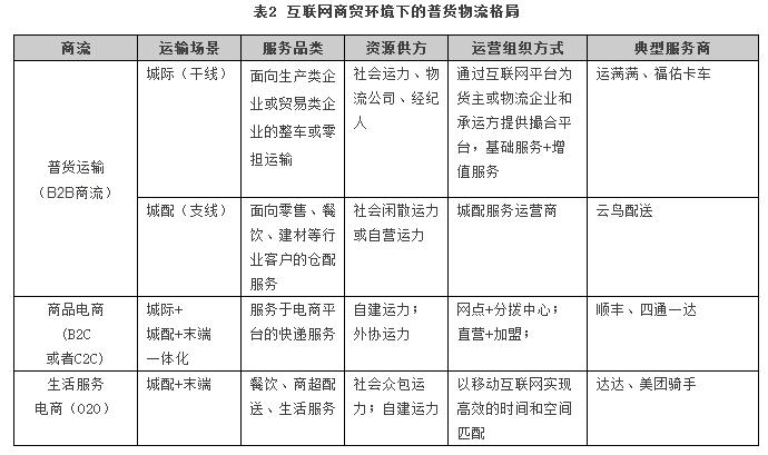 表2简单总结了互联网商贸环境下普货物流的基本格局。
