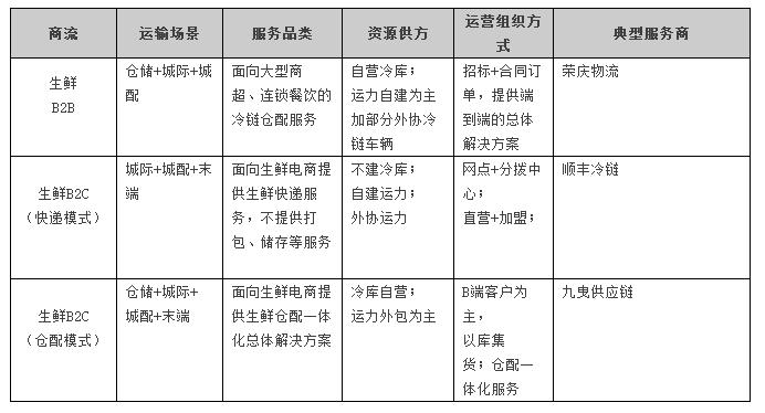 表3简单总结了互联网商贸环境下冷链运输的基本格局。