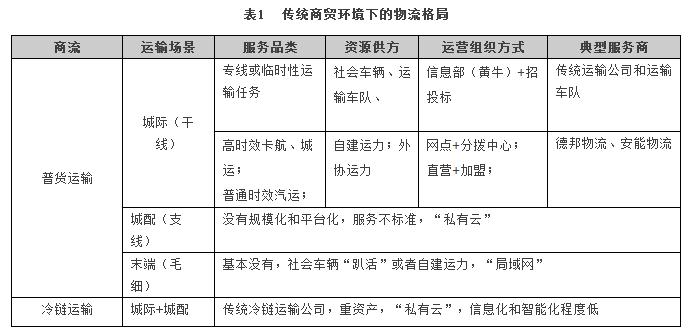 表1简单总结了传统商贸环境下普货物流的基本格局。