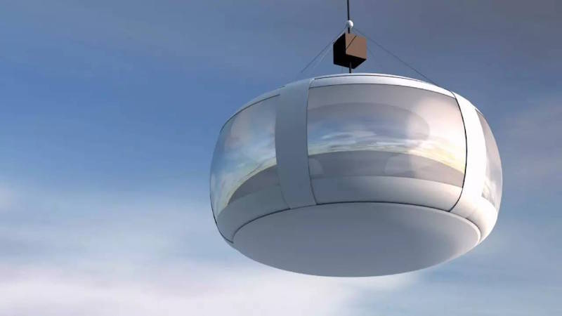 坐着一个96米高的氦气球,飞向距离地面36000米的天空边缘,喝着下午茶,吃着点心,透过四扇全景玻璃窗等待日落。这个像是出自动画电影《飞屋环游记》的场景,到2018年就会变成现实。