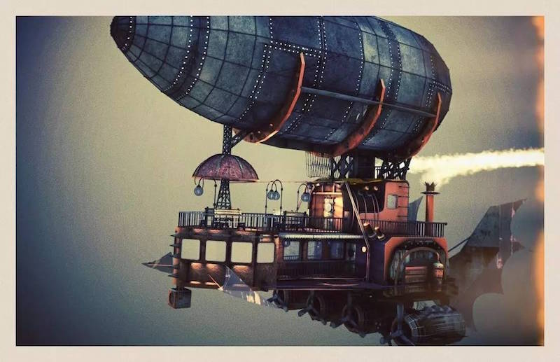 当更加先进的宇宙飞船和火箭等逐渐成为了科幻作品中的交通工具宠儿,气球作为工业革命早期最辉煌的发明之一,成为了蒸汽朋克这样有着浓郁复古色彩的科幻作品中重要的元素。例如在英国科幻小说家菲利普·雷夫(Philip Reeve)的奇幻小说《灵魂机》(Mortal Engines)系列中,有一座名叫Airhaven的城市,就是由巨大的气球牵引着漂浮在空中。在插画作品中,也出现了更多形态复杂的气球变体,化身为填充了热气的齐柏林式飞艇,或者是有着巨大翅膀、齿轮和旋转轴承的飞行器。