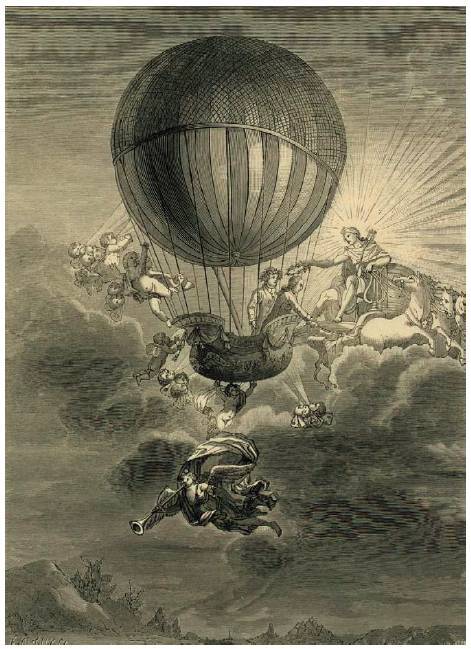 同时,这样一个从城市和农村上空慢慢飘过的巨大物体,也成为了一种最理想的大众宣传媒介。科学不再仅仅是科学家在实验室里摆弄仪器,然后在学会讨论中发表,而是真正面向了普通大众,连当时那些没有受过系统教育的不识字农人们也能欣赏这一壮观场面。王室资助的热气球自天空中缓缓降落,展示了君主的权利和伟大,像传说中的神一样,降临在王国的每一个角落。有人甚至建议,在热气球降落处树一座纪念碑,标志着前沿科学技术中诞生的新神话。