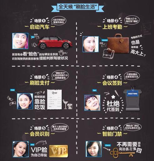 目前,人脸识别技术重点应用的领域是安防和金融。据统计,国内至少已有多家银行开始试水人脸识别技术,不用带卡就可以从ATM机上“刷脸”取款。比较早的有招商银行、上海银行。另外,中国银联也联手Linkface打造人脸识别互联网+金融支付新产品,并试点于徽商银行。