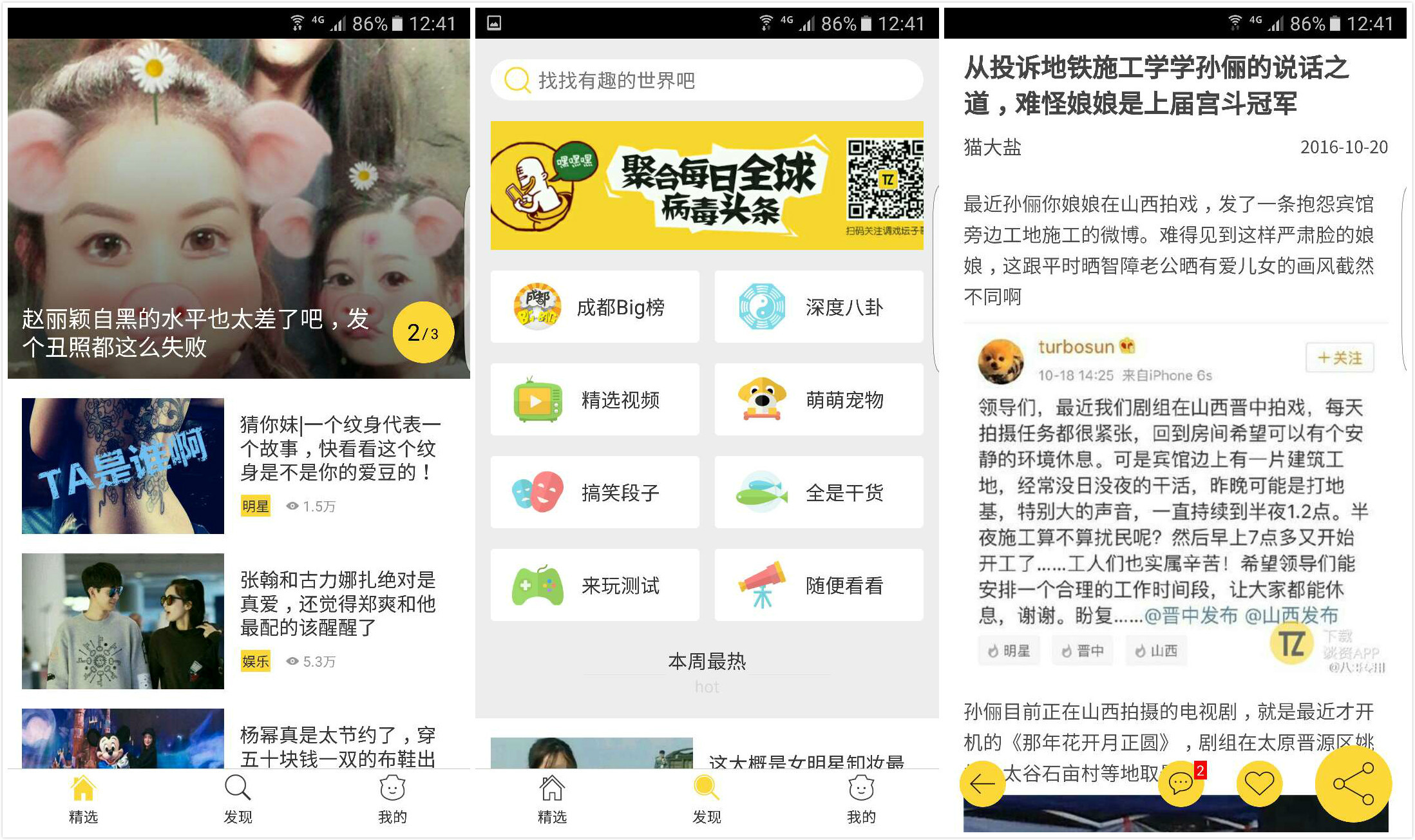 除去本土生活指南,”谈资“目前的内容规划跟我们过去报道的橘子娱乐有些相似,不同之处在于橘子娱乐在内容生产上非常倚重技术力量,有自己后端的算法来监控当下热门事件确定选题,而谈资在这方面则刚刚起步,采用的是人工+算法的方式,王少华认为他们的编辑团队在确定选题后,对内容的快速反应很强,会更加考虑用户的分享与传播。谈资未来也希望在品牌树立起来之后切入娱乐圈链条,做影视宣发、营销方面的变现。