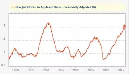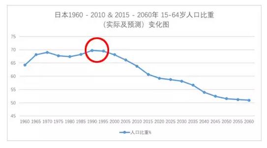 就在同一阶段,人口结构发生转折。在日本15-64岁劳动年龄人口比重在整个90年代前期达到巅峰后开始进入下滑通道;同时,从80年代末到90年代末,用工需求对供给比例持续大于100%,劳动力处于短缺。