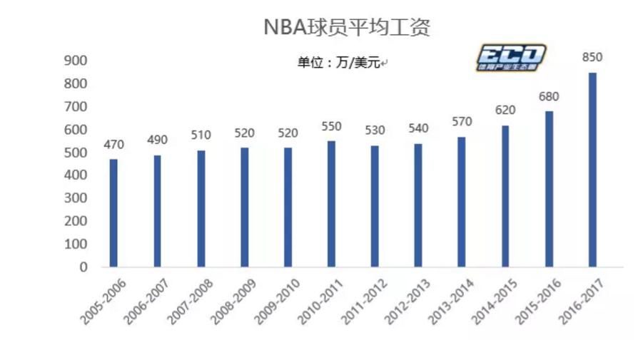 根据联盟的保守估计,新赛季 NBA 的收入将达到 80 亿美元,这比上个赛季 65 亿的收入暴涨了 23%。而在前年,这个数字才刚刚超过 50 亿美元的大关。