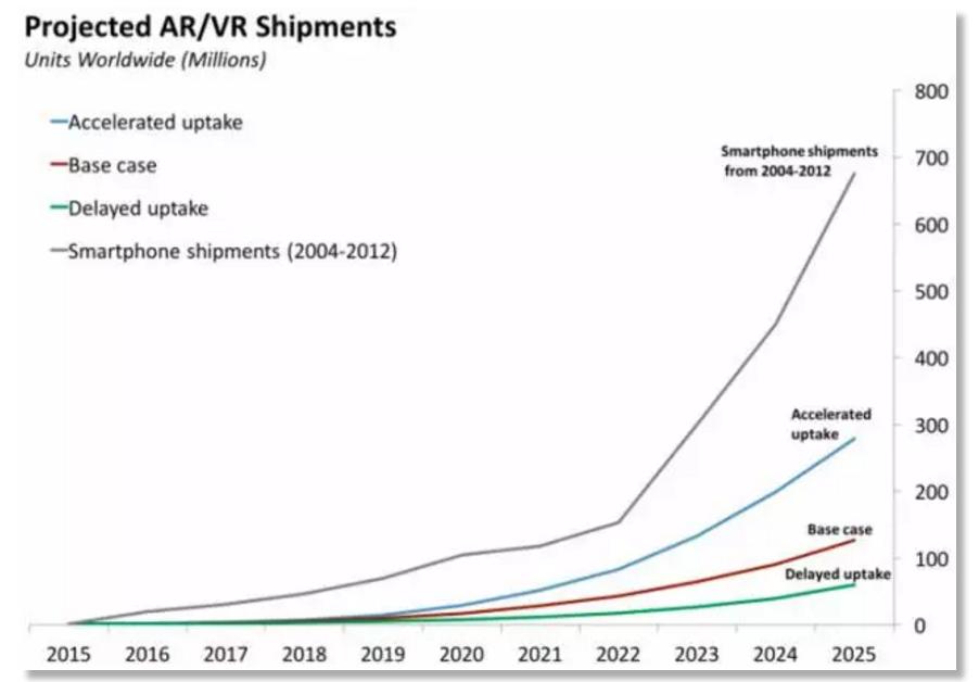 ▼Business Insider 预测的 AR/VR 设备的全球保有量趋势