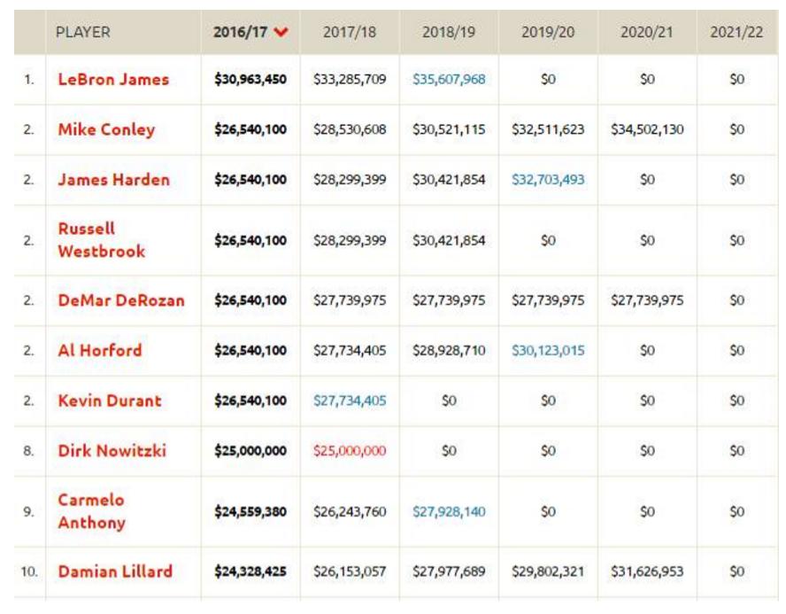 而且,天价合同还不止于此。目前NBA的各支球队已经被告知,17-18赛季球队的工资帽将会继续上涨至 1.03 亿美元,颤抖吧,年薪 12 万就算高收入的凡人们!