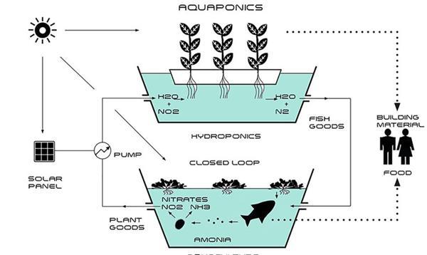 解决问题的关键在于,他创造了一个闭环的水培系统,是一个水栽培和水养殖的共同体。这个三层级的3D打印的房子本质上是一个水培环境——在上面带有水槽的种植床上进行无土栽培。水槽里还可以进行水产养殖,里面有食用鱼。鱼缸的废物(包括植物做成的食物的残余)转化成植物需要的富营养盐,从而形成一个食物链的闭环。事实上,相比于其他的农业形式,这种形式每平方英尺会生产更多的食物。