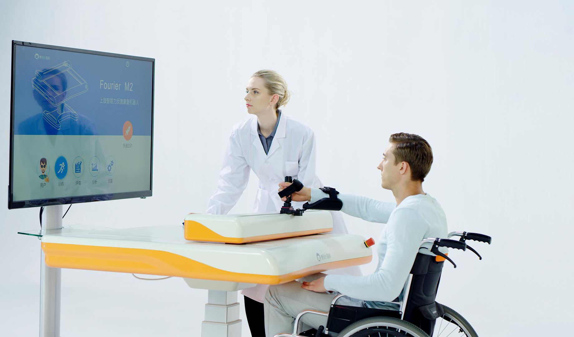 傅利叶智能已经研发完成的这款康复机器人名为Fourier M2上肢智能力反馈康复机器人,主要用来帮助上肢行动障碍患者(如由中风、创伤性脑损伤及其它损伤引起的行动障碍),完成各种运动功能的恢复训练,如抓取、伸够、梳头、脱衣服等。