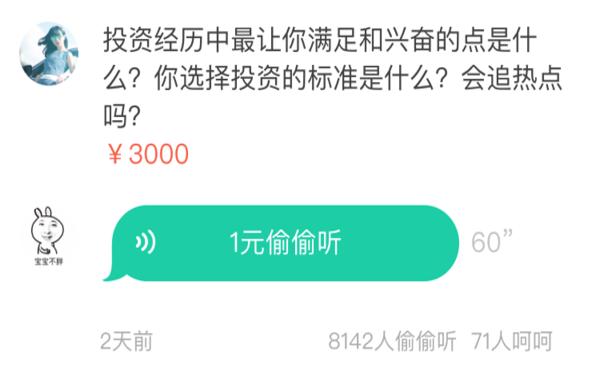 对分答上的提问者来说,短短60s的回答并不足以得到多么深刻的知识,其实更多是一次与大V交流的机会。同时,当提问的主动权掌握在自己手里时,用户也更愿意选择向那些在自己心里有一定影响力的人提问。比如正因为我喜欢马东,我会向他提问,并且他所有的回答我都要听一遍,不管问题是关于人生、职场;还是关于马东和高晓松、蔡康永是否在闹不合,等等。