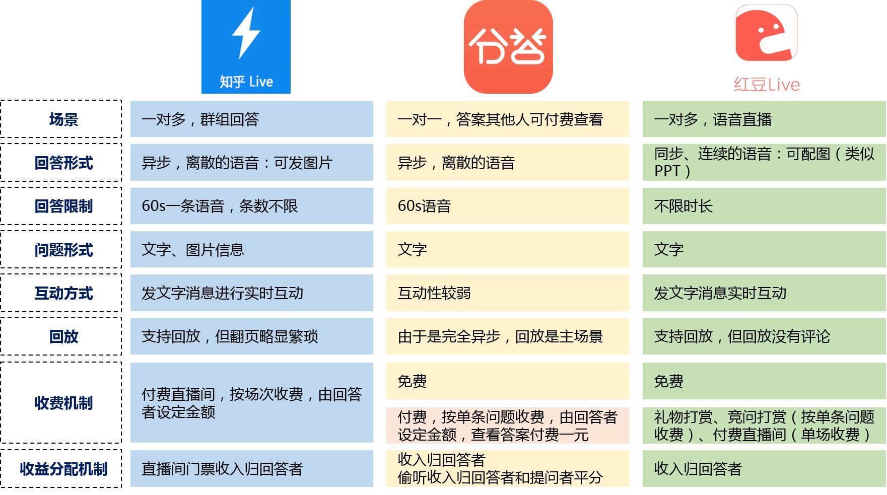 1、输出内容的深度:知乎Live=红豆Live>分答