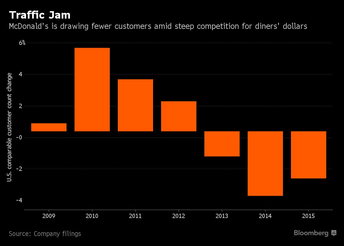 内部文件显示,截至第三季度,麦当劳的客户数量今年下降了0.1%,而2015年同期下降了3.1%,2014年下降4.1%,2013年也处于下降状态。
