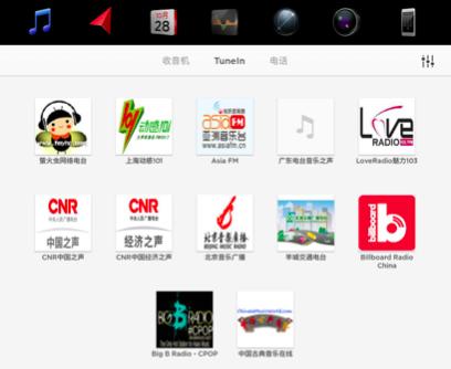 目前的媒体播放器采用了新设计,支持个性化设置,已收藏的内容可以在前端居中显示。用户可以切换收音机、Tuneln 网络电台、蓝牙和USB设备。