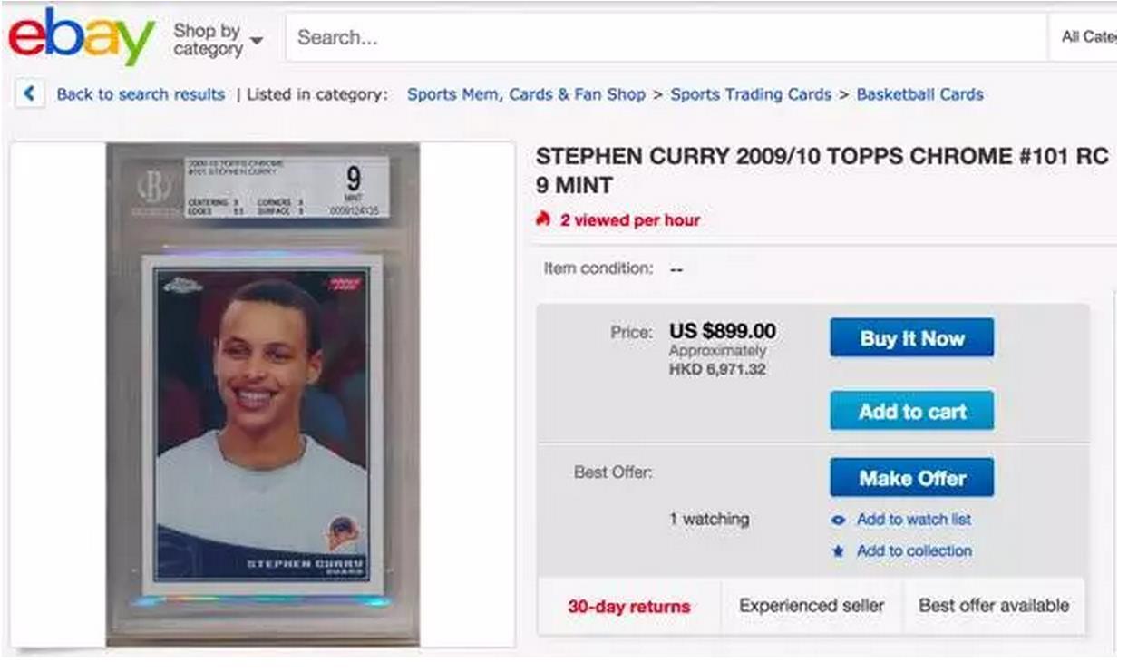 ▼ebay上一张库里新秀卡的拍卖页面