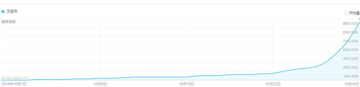 中国人今年对万圣节的热情也有大幅度提升。根据百度指数数据,进入10月以来,“万圣节”的搜索频率出现大幅增长。