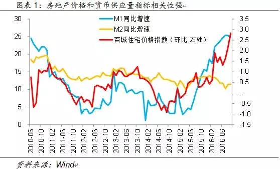如果将房地产价格和货币供应量指标(M1和M2同比增速)进行比较可以发现,货币政策的收紧与放松成为影响房地产中短期价格波动的最重要指标。进一步地,M1同比增速和房地产价格指数的相关性更高,表明流动性成为房地产价格的重要推手,房地产也因此成为一类极易泡沫化的资产。