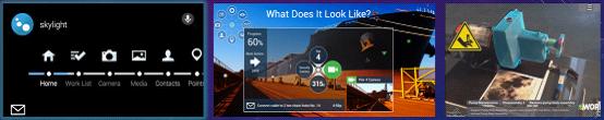 头戴式眼镜,用于工业领域,帮助工人提高工作效率,可以显示基本信息、待办事项、拍照、视频、沟通交流,标示任务等,使用AR对物体进行标示的沟通更易让人理解意图。