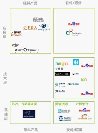 大企业一般从下往上切入,科研机构从中间切入,创业公司从上层切入。