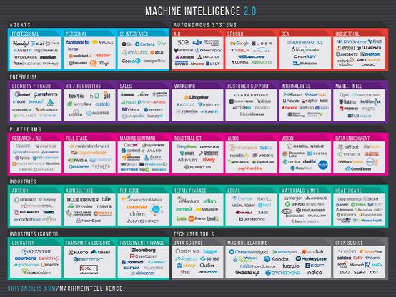 上图数据比较老,只是展示了一小部分。AI相关的创业公司,在2016/9的时候,仅仅国内有公开信息,就有超过200家,如果算上大数据挖掘方面的公司,有超过1000家,而国外公开信息的AI相关创业公司,有800多家。