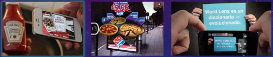 用手机看物体或文字,会出现相关的广告、动画、翻译,覆盖在原来的物体上。