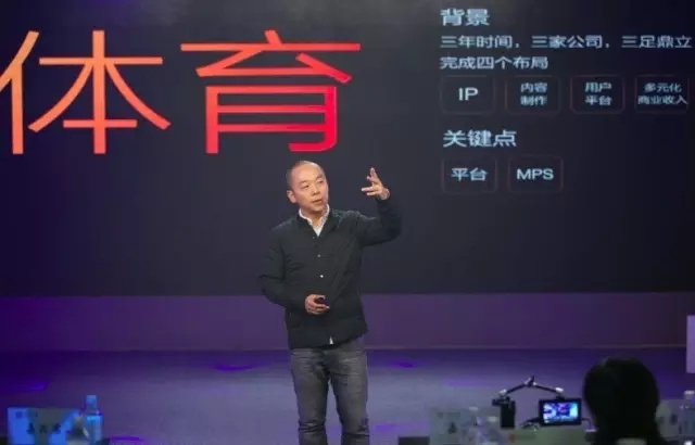 我们再看下一个变革点,用户今天获取信息已经不再需要传统的不能交互的非互联网的屏幕了,他们一定需要互联网的屏幕,他们需要Smart TV、互联网电视,他们需要用手机APP观看,甚至需要用VR头盔来观看,他们觉得这是他们今天能选择的平台,这是中国体育迎来的巨大商机。还有这场战役会多长时间结束?我觉得不会超过三年。三年之后,会出现两到三家公司。老大的公司过千亿,老二这家公司一定过100亿美金,老三也过100亿人民币。最后长什么样?做好四件事情:第一要有IP,大IP要有;第二个有好的内容制作;第三个要有互联网平台,要有VR,要有smart TV,要有APP;第四,要把赚钱的方法放进去,广告、收费、题材、电商等等放进去,把这四件事全做好。整个中国体育公司,四件事全做的,除了乐视只有我们。我们进场之后,发现体育人才都跑过来,因为找不到好平台,你来了。乐视先进场,把所有的体育圈人才动一下,但是任何一个岗位的人,这个行业里面三五个人很厉害,动了一个人,另外三个人也坐不住了。好的IP说要跟我们合作,好的运营公司也要跟我们合作,为什么?顺风顺水,所以这家公司办了4个月的时间,我们做到了。