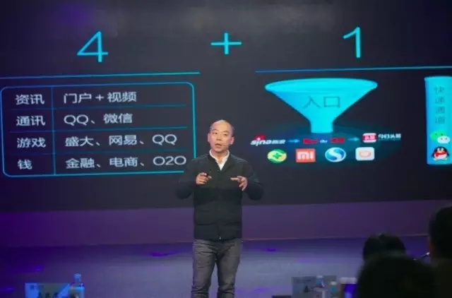 但是用户的服务里面,在左边四大服务里面,用户的服务没变,互联网瞬息万变,天天在变,但是你要知道,这四件事不变。因为互联网是信息,第一件事情是获取信息,所有没有变。BAT之外变丰富以后,大家看到优酷、暴风影音,为什么出现阿里?在这四大服务中,离钱最近的早期是游戏,所以出现了盛大。但是盛大为什么霸主没有一直当下去?游戏是分散的。跟钱更接近的企业出现了,电商,所以出现了阿里。跟钱还接近的是O2O,买服务。一个进家服务,一个出门服务,所以一个是58、一个美团。还没有那么大,但是它做得足够复杂,系统化,离钱很近。还有现在起来的金融,大家觉得蚂蚁金服很厉害。跟钱有关的三件事,金融、电商、O2O都很值钱,跟钱有关的游戏也很厉害。百度就在我前面,离不开它,但是对用户服务足够好的时候,阿里最大的战略决心就是终于有一天,我让百度不收录我。58他们都没有勇气说我也不让百度收录我了,还是没勇气。