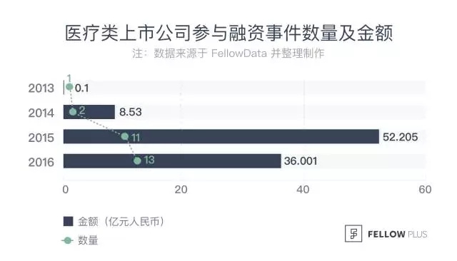 同时这两个领域在业务逻辑上 2016 年的最新趋势是线上线下更深度融合,数字医疗企业拓展线下业务或者传统医药医疗企业战略性投资线上业务。前者如微医互联网医院及全科医学中心、丁香园的丁香诊所等,后者如爱尔眼科的爱眼 e 站、通策医疗的存济网络医院等。据统计数据显示,2016 年国内医药医疗类上市公司参与的数字医疗融资事件数量三季度已超 2015 年全年,全年融资总额也预估与去年接近(上图),维持 2015 年高峰时期的规模。上市公司不断加大这一领域投资,对于整体行业,特别是专科服务这一细分领域(上市公司大多是细分领域龙头企业)的创新及资本退出必将带来积极的影响。