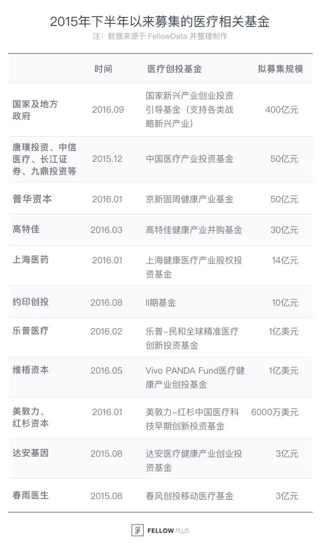 据不完全统计了 2015 年下半年(2015 年 7 月份股灾之后)以来公开的新募集的医疗相关基金拟募集资金已超过百亿规模。