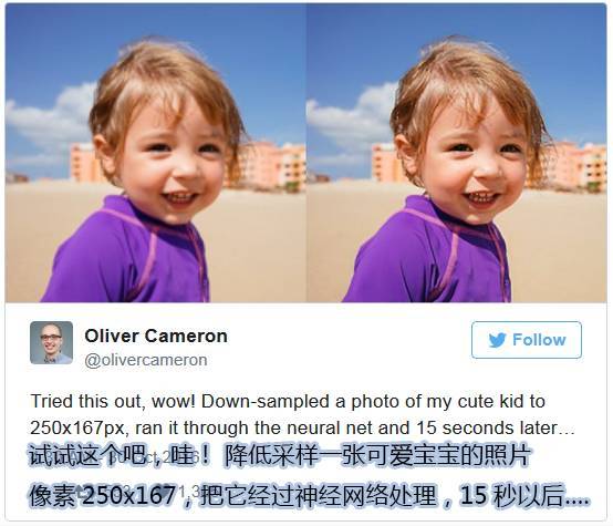 1、还在为一张像素低的图片头疼吗?Deep Learning可以预测出此图片在高像素环境下的呈现,并且加上缺失的细节。