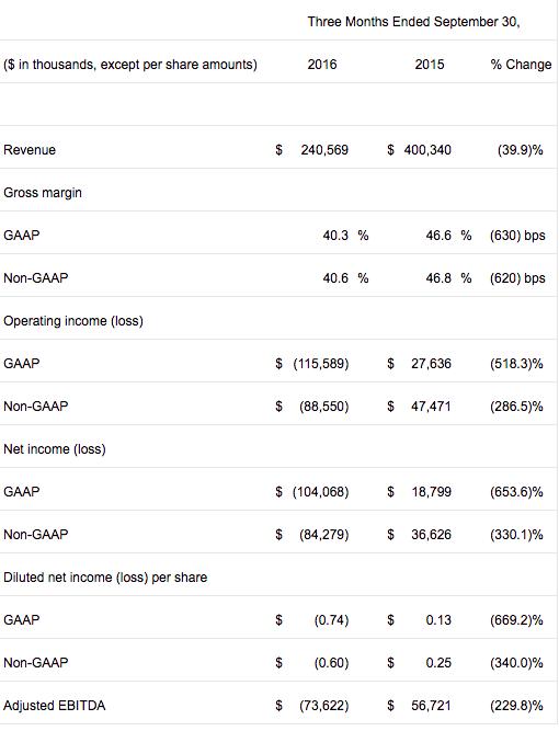 但综合前九个月的业绩来看,总营收为6.45亿美元,但去年同期为11.83亿美元。净利润方面,去年同期为7058亿美元,但今年累计亏损高达3.03亿美元。对于2017财年是否能盈利,还有待观望。