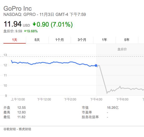 截至目前,GoPro每股股价为11.94美元,跌幅为7.01%,市值为16.26亿美元。