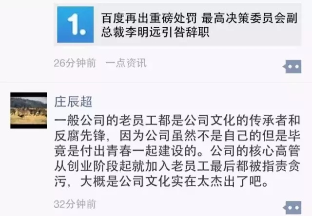 相比较阿里和腾讯,百度曝光给外界的贪腐案件似乎比较多。