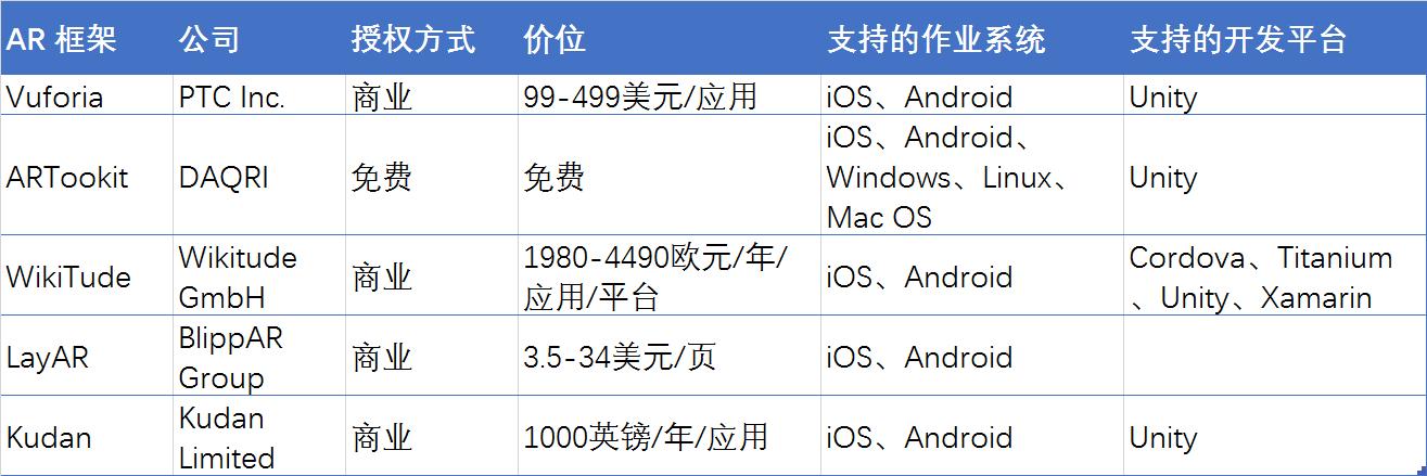 AR框架对比