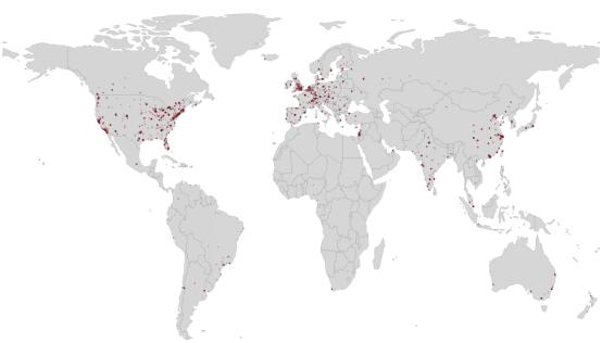 从地理分布上来看,北美与西欧在人工智能产业的投资较为密集,且数量较多,其次为中国、印度和以色列等地。