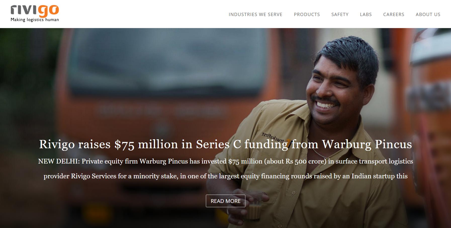 2016年11月6日:印度物流供应商Rivigo完成C轮7500万美元融资,共计融得1.05亿美元,投资方包括SAIF Partners、Warburg Pincus。Rivigo成立于2014年。