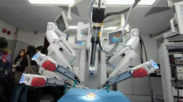 今年暑假看到了达芬奇的机器人,全世界已经装了3000台,它有三个机械手臂,中间一个摄像头,相当于他的眼睛,另外两个手臂左右进去,给他动手术。做得最多的是妇女的子宫肌瘤的手术,它先将二维图像还原到三维图像,也可以做心脏搭桥,然后进去安静地切掉。