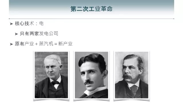 人类历史上所有的富豪加起来最多的是出在这十年,都出生美国。原因很简单,就是第二次工业革命创造了巨大的财富,核心技术就是电,全美国只有两家公司发电,一个是爱迪生的,一个是特斯拉的。在这以前,在有电报以前就开始有通讯产业,当时在欧洲有路透社,他们养了一群信鸽,用鸽子传递情报。但是有了电之后就不一样了。经过了50年,1920年前后美国非常繁荣,大家都过得很好。